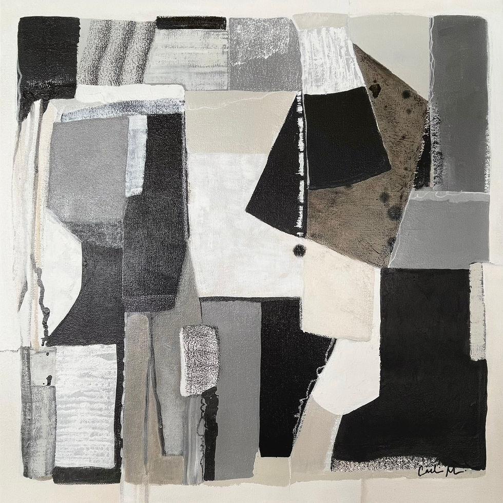 These are a collection of my abstract paintings with geometric shapes, lines, and textures, featuring a harmonious blend of colors and patterns. I use a variety of media to create layers of texture and interest. The paintings are designed with acrylic, pastel, chalk, charcoal and spray paint. The artworks in this collection are characterized by their structured and intricate compositions.